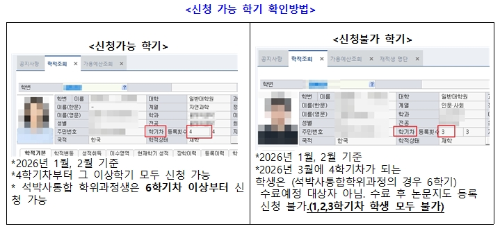 2026년 8월 학위수여를 목표로 하는 대학원생 및 학생신분으로 연구과제에 참여할 예정인 대학원생께서는 아래 안내를 확인하셔서