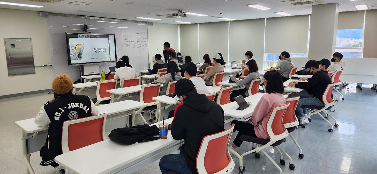 산업 및 의료분야의 변화와 디지털 헬스케어에 대하여 설명하고, 민간분야와 공공분야의 데이터 사례를 비교 분석 하였습니다. 또한 빅데이터 구축사례와 이로인한 기대효과를 강의하며 학생들과 자유롭게 질문하고 강의하는 시간을 가졌습니다.