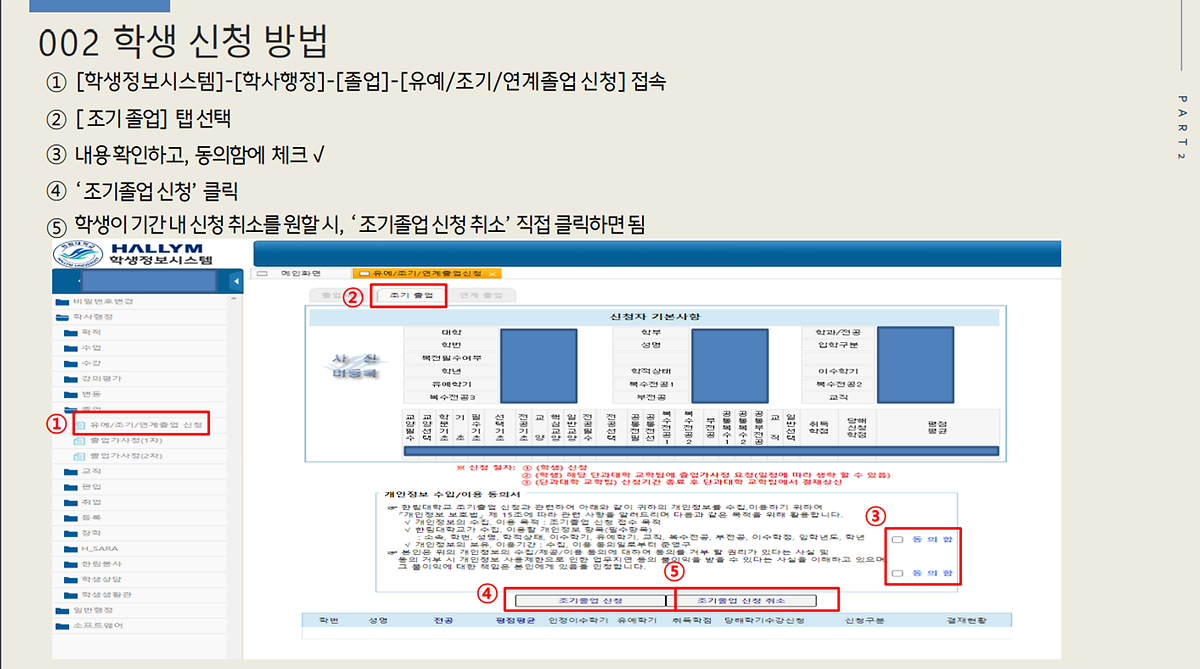 4) '조기졸업 신청' 클릭
