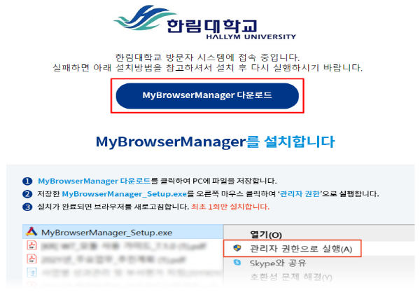 * 최초 접속 시 원활한 이용을 위한 프로그램 설치 필요(설치 후 크롬, 엣지 모두 이용 가능)