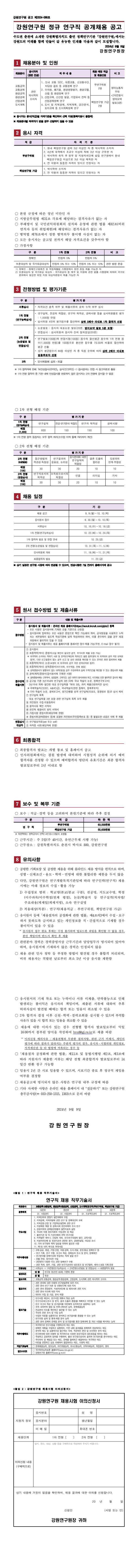 강원연구원 정규 연구직 공개채용 공고