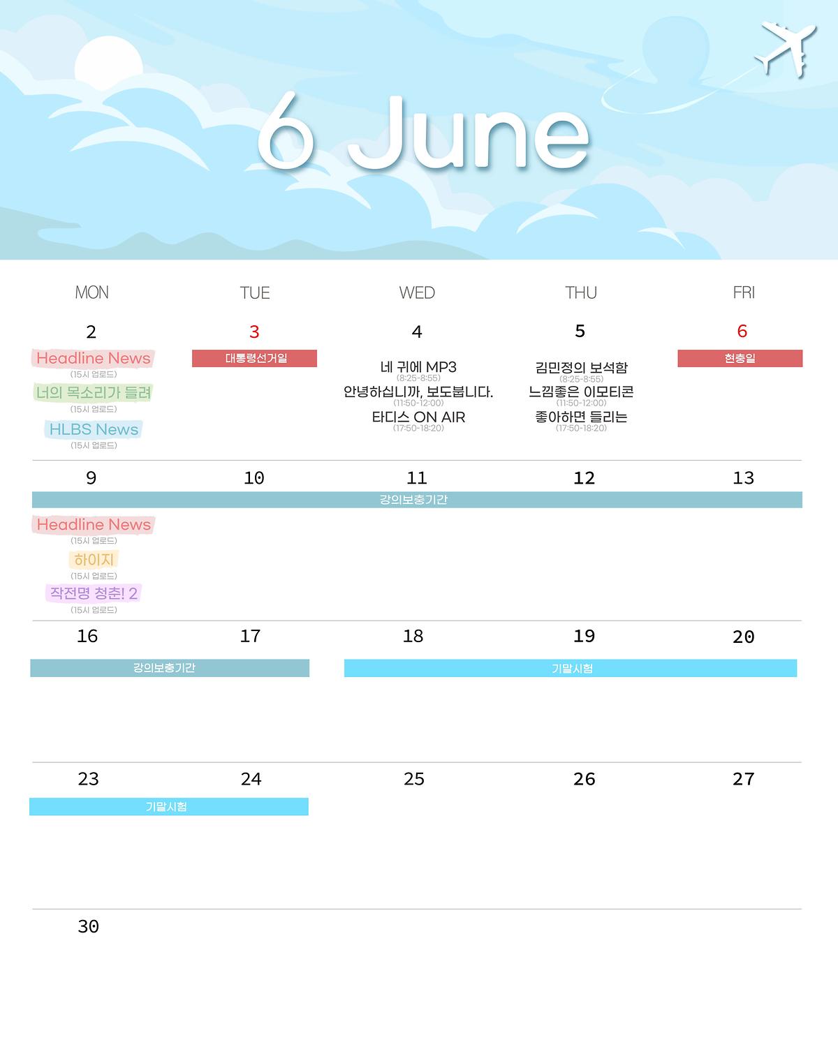 ☁️HLBS 6월 편성표☁️