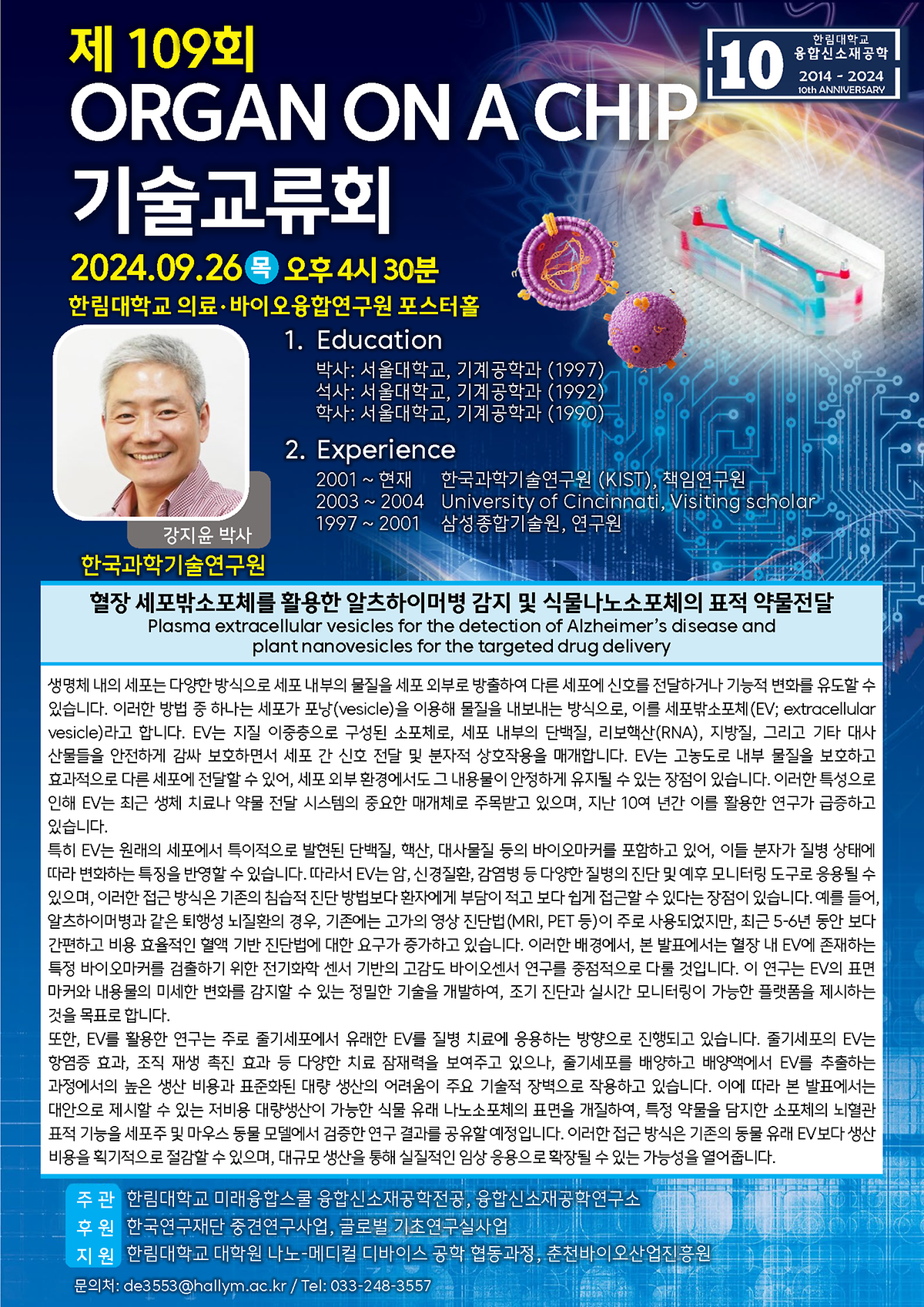 제 109회 Organ on a Chip 기술교류회가 2024년 9월 26일 진행되었다.