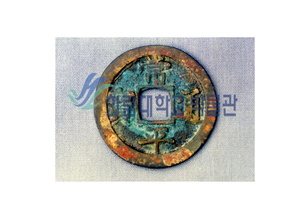 강화 조선궁전지에서 출토된 상평통보이다.모양은 기본적으로 외형이 납작하고 둥근 가운데 네모난 구멍이 있으며, 앞면에는 ‘상평통보(常平通寶)’라고 글자가 쓰여져 있다. 상평(常平)은 ‘상시평준(常時平準)’의 준말인데 유통가치에 항상 등가(等價)를 유지하려는 의도와 노력을 그대로 반영한 표시였다.