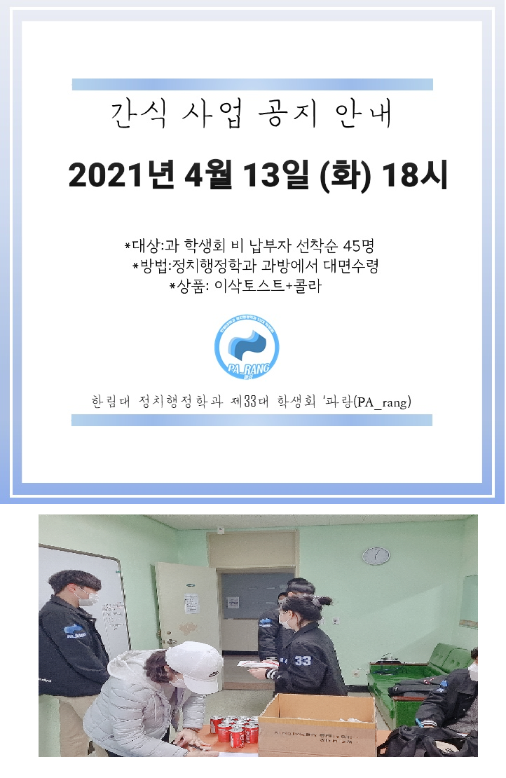 ① 2021.04.13.(화), 학과 간식 사업 진행