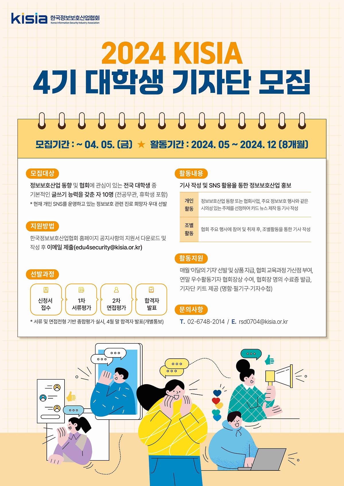 KISIA 한국정보보호교육원에서 「제4기 대학생 기자단(KSR)」을 모집합니다.