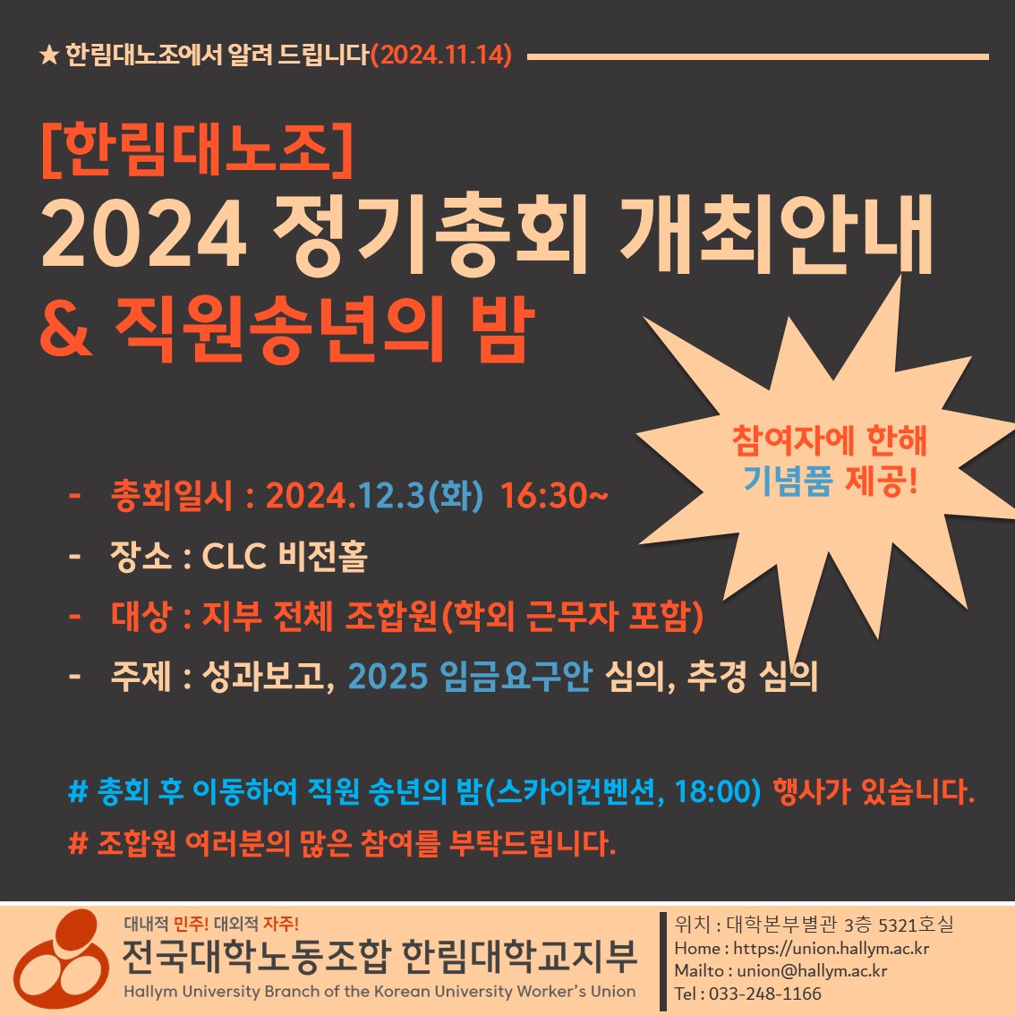 20241114 2024 정기총회 개최안내 & 직원 송년의 밤