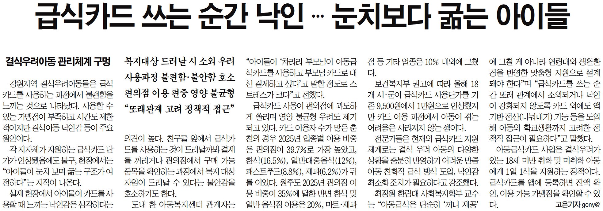 급식카드 쓰는 순간 낙인 … 눈치보다 굶는 아이들
