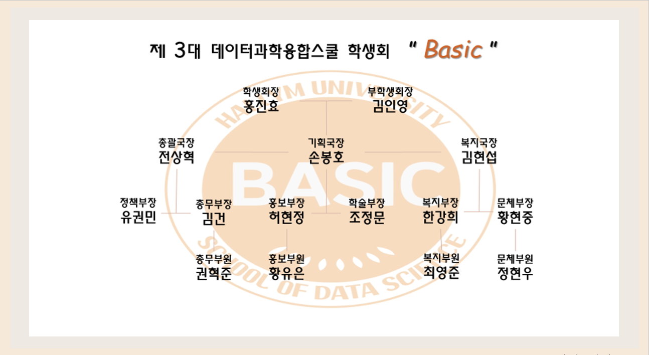 안녕하십니까! 제 3대 데이터과학융합스쿨 학생회 Basic 입니다.